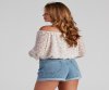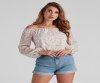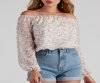 This adorable floral printed blouse is perfect for elevating your everyday spring look. It features an off-the-shoulder neckline, long bishop sleeves, a cropped fit with a cinched hem, and an all-over dainty floral print. Style this woven blouse with