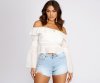 We love a top with a perf peplum detail! This adorable off the shoulder top is oh so flattering & amazing for spring!