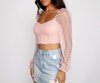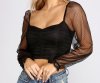 This mesh polka dot crop top is perf for the girl who's looking for a simple and sweet look! It features sheer long sleeves with ruffled hems, a sweetheart neckline with a padded bust, front ruched detailing, and a cropped, form-hugging fit. This top will look so stunning with a pair of