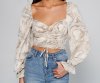 Create a trendy moment in a cute crop top that keeps your look on point! The top features a fab marble pattern, a sweetheart neckline, a ruched bodice with drawstring, long sleeves, a cropped hem. Complete look with