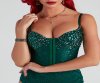 Look and feel like a natural beauty in this glamorous bustier bodysuit at the next holiday party! Make them all green with envy as you grace everyone's presence in this sultry one-piece featuring an intricate lace and rhinestone gem design that's sure to turn heads. Complete your look with a