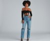- Off-the-shoulder neckline