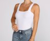 in features a trendy square neckline, and scalloped tank-like straps to add that extra detail. Rock your look with
