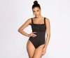 This knit bodysuit amps it up with its stylish ruched detail! Pair with some classic denim and you've got a cute 'fit babe!