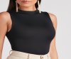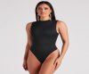 This chic mock neck bodysuit will give you a sleek and smooth silhouette. It features a sleeveless bodice, tank shoulder straps, a thong bottom, and a form-hugging fit. The double-lined stretchy knit fabric offers a seamless design and has an ultra-soft buttery feel. Style with your fave high waist bottoms and
