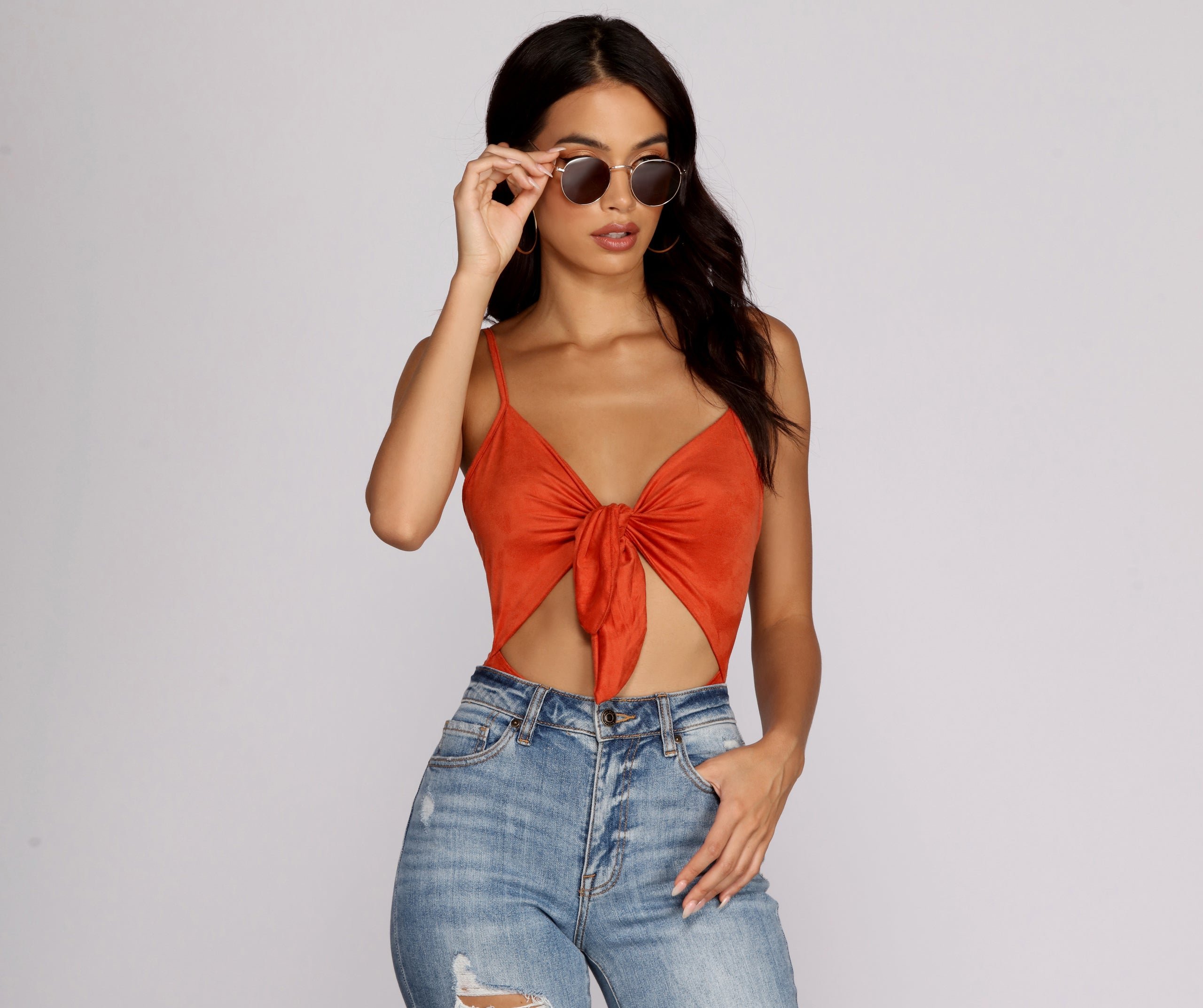 TableClothsUs Sueded Tie-Front Bodysuit