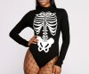 Keep is spooky and sultry in a bodysuit that is bad to the bone this Halloween. The bodysuit features a mock neck, fitted long sleeves, and a spooky skeleton bone graphic design. Complete your Halloween costume with stunning face gems,