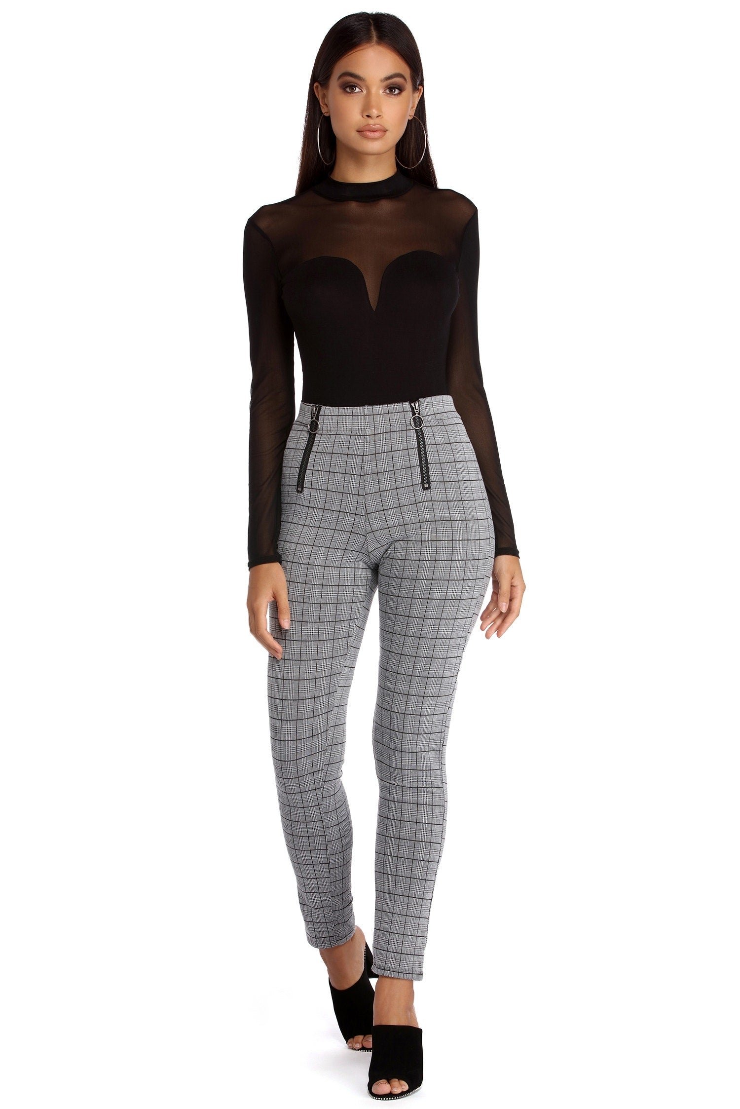 You've got sweet and sultry down to perfection in this black mesh bodysuit! It features a mock neckline, long fitted sleeves,?and a thong bottom with snap button closures. Bodysuit is composed of a semi-sheer mesh fabric with a solid sweetheart front, and offers a moderate stretch.?
