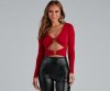 Make this bodysuit the one you can count on to make make a daring impression! The bodysuit features a plunging V-neckline, a double O-ring design, long sleeves, a sexy cutout at the midriff, and a thong bottom with a dual snap-button closure. The bodysuit is composed of a smooth knit fabric that offers a form-hugging fit with a moderate stretch. Complete look with high waist jeans and