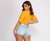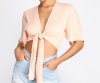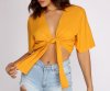 Go with the flow of this pretty tie front top! It features short flowy kimono style sleeves paired with a tie front and a cropped hem. The top is composed of a woven fabric with no stretch and offers a relaxed and comfortable fit.