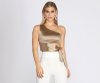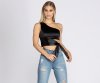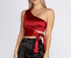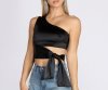 Dress up your everyday style with this sleek satin one shoulder crop top!