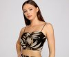 Let those tropical vibes allure you in with this cute crop top! The crop features a sleeveless square neckline, bungee spaghetti straps, a tropical palm leaf print, and a cropped hem. Complete look with the matching mini skirt and wedges that will have you vacay ready.?