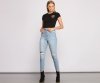Layer on this adorable graphic tee for a sassy, spooky look this Halloween season! It features a cropped, form-fitting style with a small, colorful and decorative skull on the top. Pair this screen tee with some gorgeous face gems,