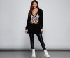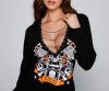 Showcase an edgy biker babe vibe with this cool graphic tunic. It features long sleeves, a low V-neckline with tiered chain-link details, a center motorcycle and skulls graphic with the script "Motorcycle Biker," and a relaxed fit. Style this tunic with