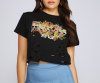 Get an on-trend edgy look with this cool graphic tee! It features a crew neckline, short sleeves, a center flame graphic with the script "Rock And Roll," distressed slashed detailing, and a cropped, raw cut hem. Style this relaxed-fitting tee with a