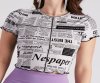 You love all things extra, so this newspaper print crop top is a trendy pick for you! It features a crew neckline, short cap sleeves, a fitted cropped hem,?exposed seams and lettuce edge trims, and an all-over newspaper print graphic. The smooth knit fabric offers plenty of stretch. Style with