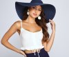 Stun in this cute crop top that has adorable details! It features a sleeveless V-neckline, spaghetti straps, and a cropped ruffled hem with a front drawstring. Style this top with cutoff denim shorts and