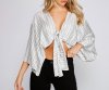 Coast on through the day with a chic top! The top features a plunging V-neckline, kimono sleeves, a tie-front hem, and a striped pattern. The top is composed of a gauze knit fabric that offers a relaxed fit with minimal stretch. Complete look with