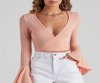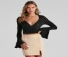 Go with the flow of this adorable lightweight crop top! It features long bell sleeves with flared hems, a V-neckline, a wrap-front design with a tie closure, and a cropped fit. Style this top with