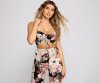 Make sure to pack this tropical crop top for your next island getaway! It features a sleeveless, v-neckline, spaghetti straps, ruched front with tie and a cropped hem. Complete the look in the matching pants.