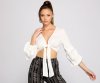 Simply Pretty, you're going to look bomb this bubble sleeve top. Team it up with denim shorts and sandals for a fresh summer look.