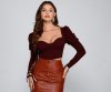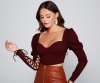 Keep it timelessly chic in a corset that elevates your look! The corset features a sweetheart neckline, padded cups, contrast piping with flexible boning, long sleeves with a lattice design, and a cropped hem. The top is composed of a lined crepe fabric that offers a form-hugging fit with minimal stretch. Complete look with