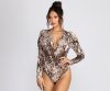 Make major moves in this trendy piece bb! This snake print bodysuit can easily be paired with denim or edged up with faux leather.