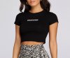 Yes girl, get a snatched look in this trendy graphic tee! It features a crew neckline, short sleeves, a cropped hem, and a contrasting hued script that reads "Snatched." Top is composed of a knit fabric with moderate stretch.