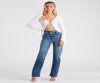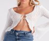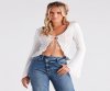 This airy lightweight knit tie-front top gives off those effortless beachy vibes! It features a scoop neckline, a dual tie-front design, long flared bell sleeves, a cute scalloped front hem, and a mid-length, relaxed fit. The sheer knit fabric features a textured ribbed pattern. Layer over a basic bodysuit and style with