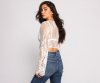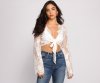 Create a flawless, stunning look in this sheer lace top! Featuring long billowy flared sleeves, an eyelash lace trim, and a majorly cropped hem, this top will showcase your effortless beauty. Complete the look with